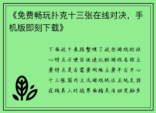 《免费畅玩扑克十三张在线对决,手机版即刻下载》